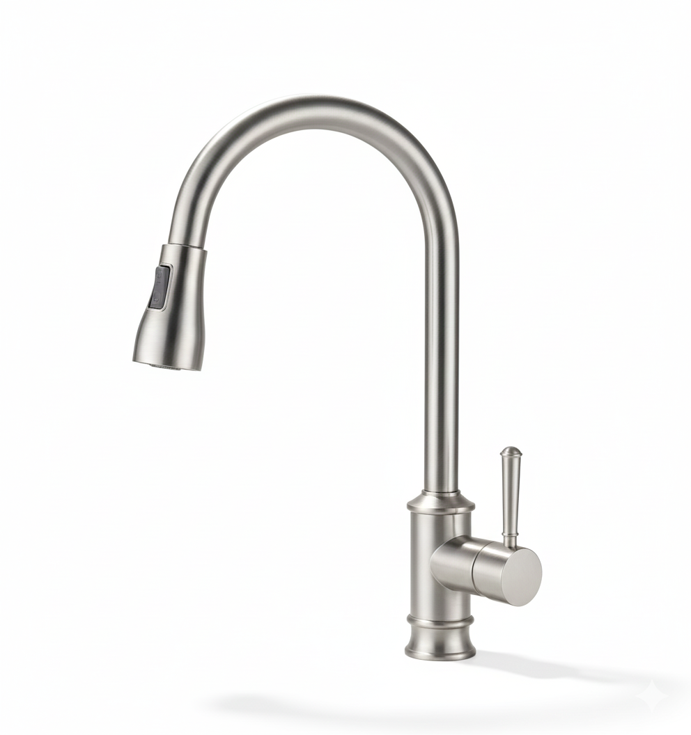 Stainless steel faucets have a finish that is durable, easy to clean, and resist oxidation. With the pull-down spray head, you can direct water wherever you choose, providing added convenience and versatility for cooking and cleaning.